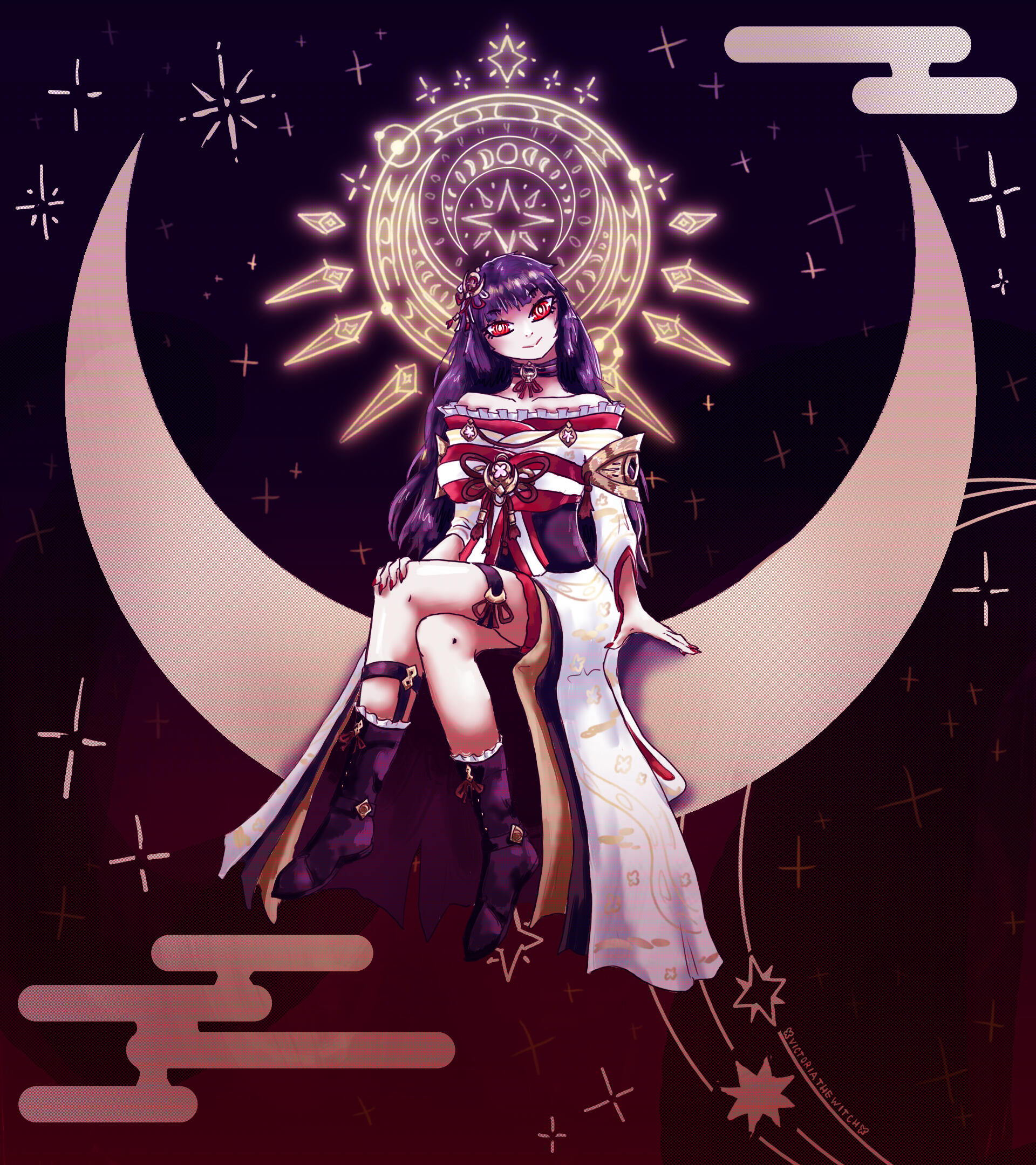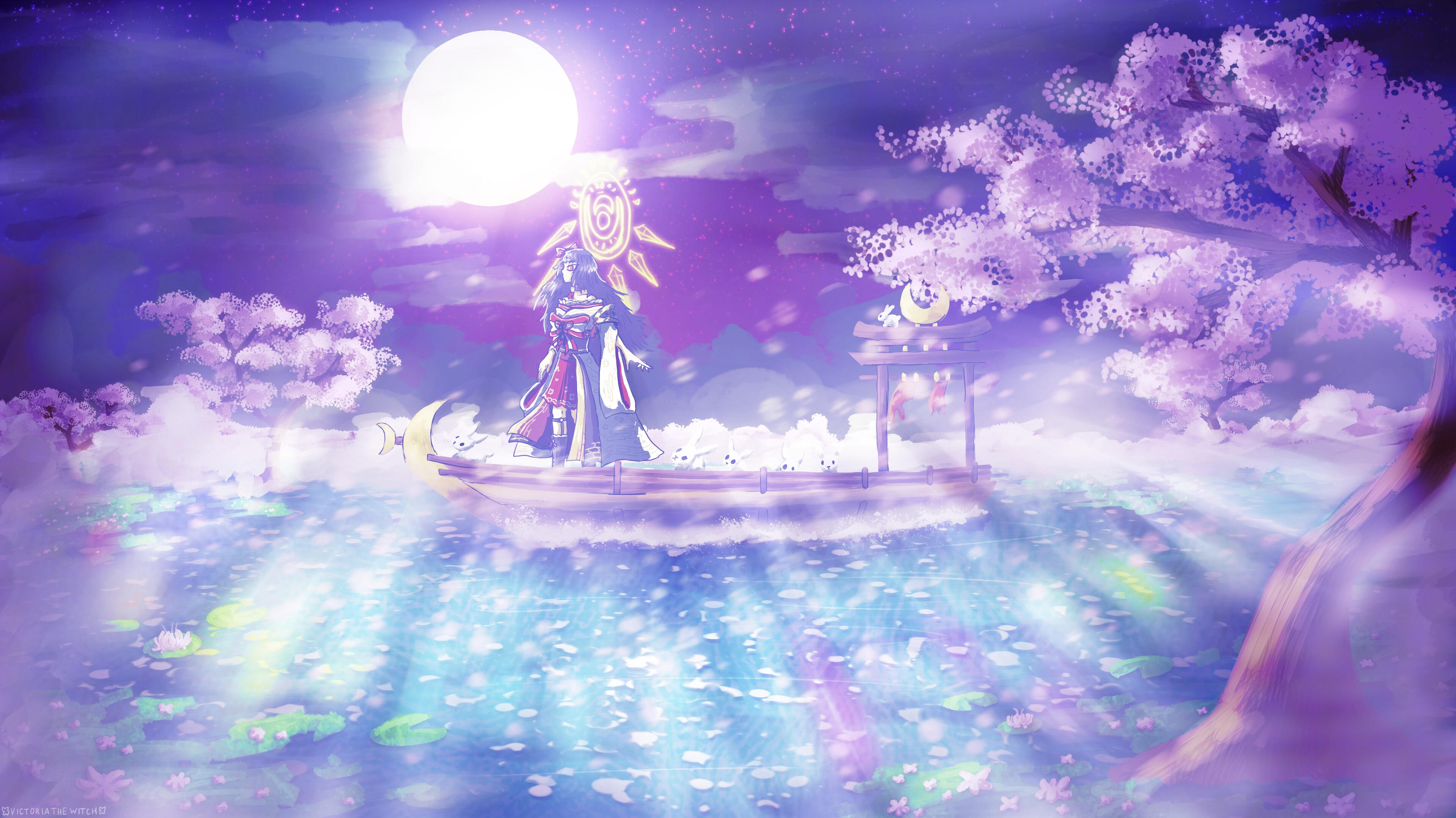 A state-of-the-art divine super weapon, programmed to serve the role of a divine arbiter for Sakura Horizon. Powered thru Moon Rabbit lunar magics and technologies. Commands others thru the power of the moon, and rallies people together thru high-impact music, like J-core or hardcore techno.
